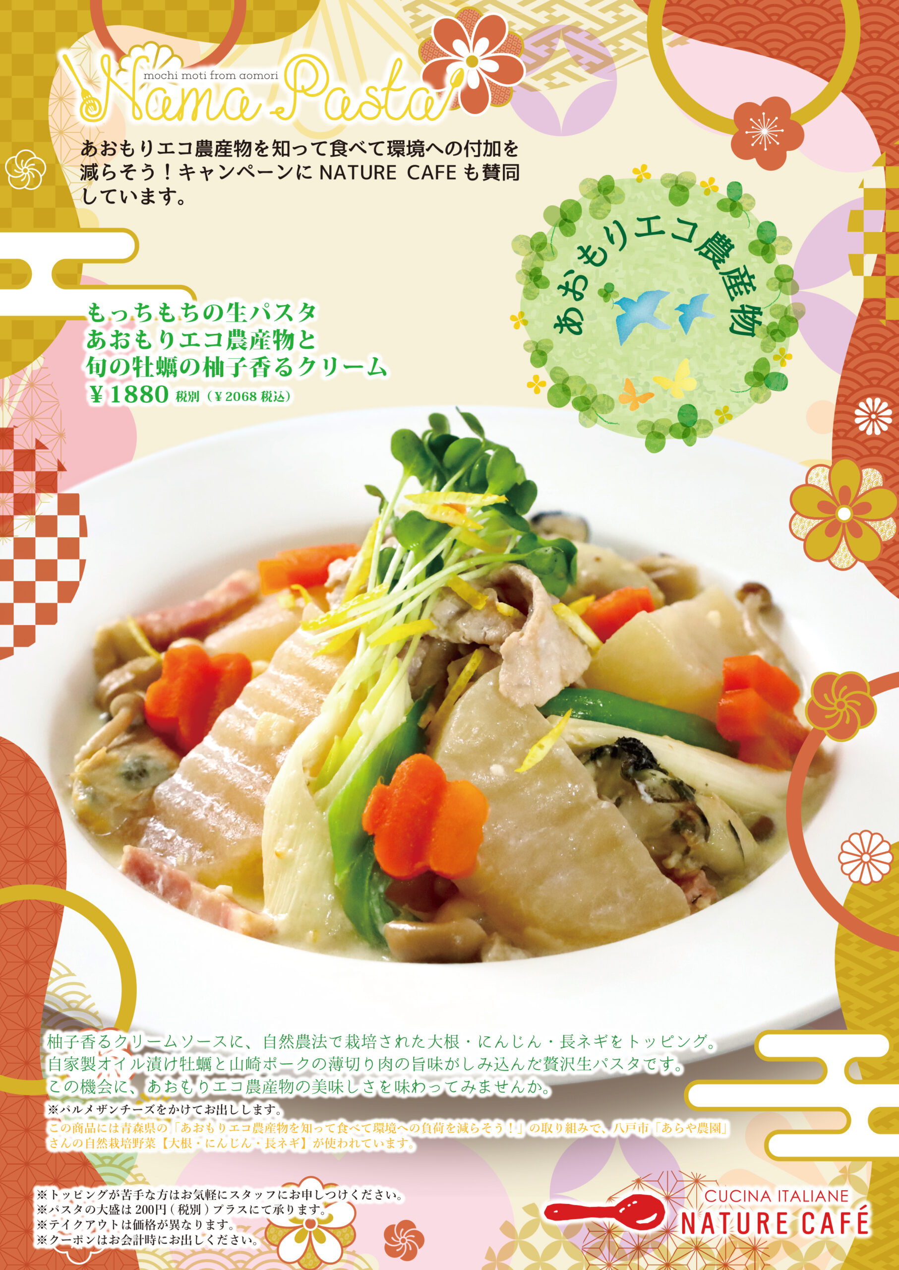 1月の限定もっちもちの生パスタは「あおもりエコ農産物と旬の牡蠣の柚子香るクリーム」