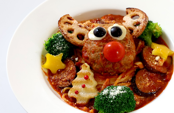 ハンバーグをトナカイの顔にアレンジし、ポテトのツリーや星のパプリカで飾り付ければ、気分はすっかりクリスマスです。