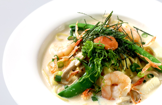 柚子香るクリームソースに、自然農法で栽培された大根・にんじん・長ネギをトッピング。